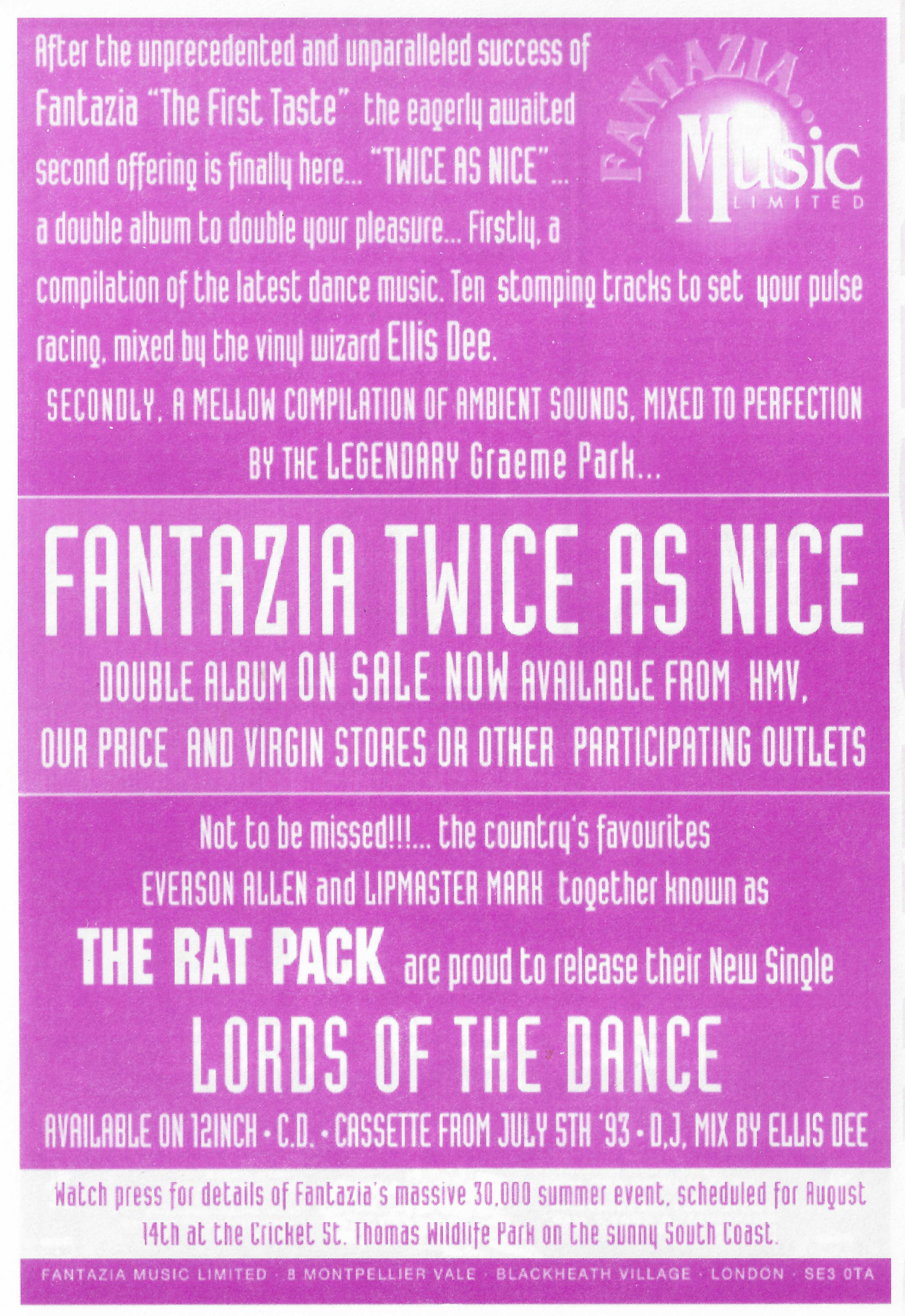 - Fantazia Saturday 14th August. Cricket St Thomas Wildlite Park on the South Coast