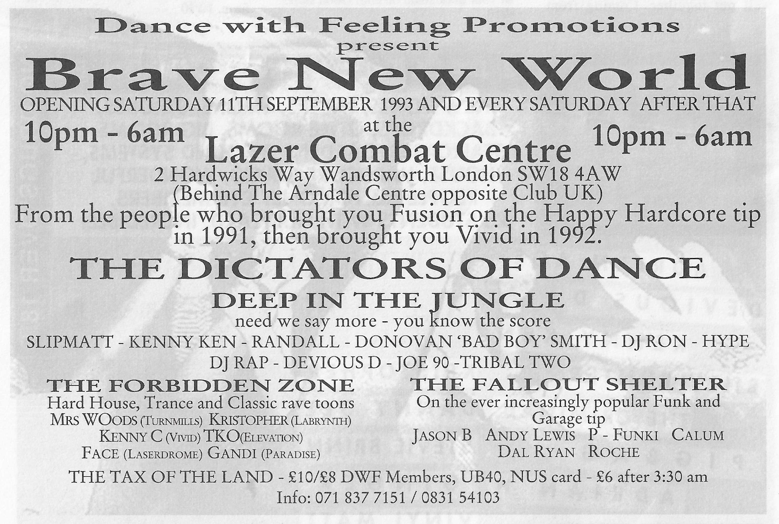 - Dance With Feeling Promotions present Brave New World @ Lazer Combat Centre, Wandsworth