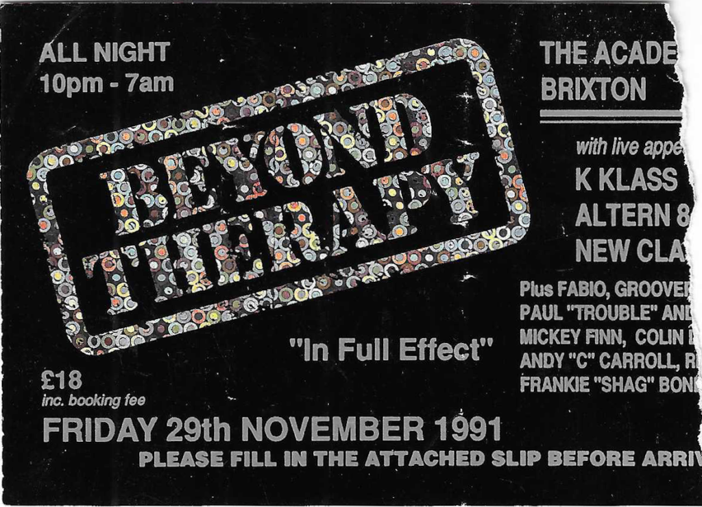 Beyond Therapy 29th November 1991 29th November 1991 – ticket 21st December 1991 Tags – Beyond Therapy – Dance Dimension – Global Dance