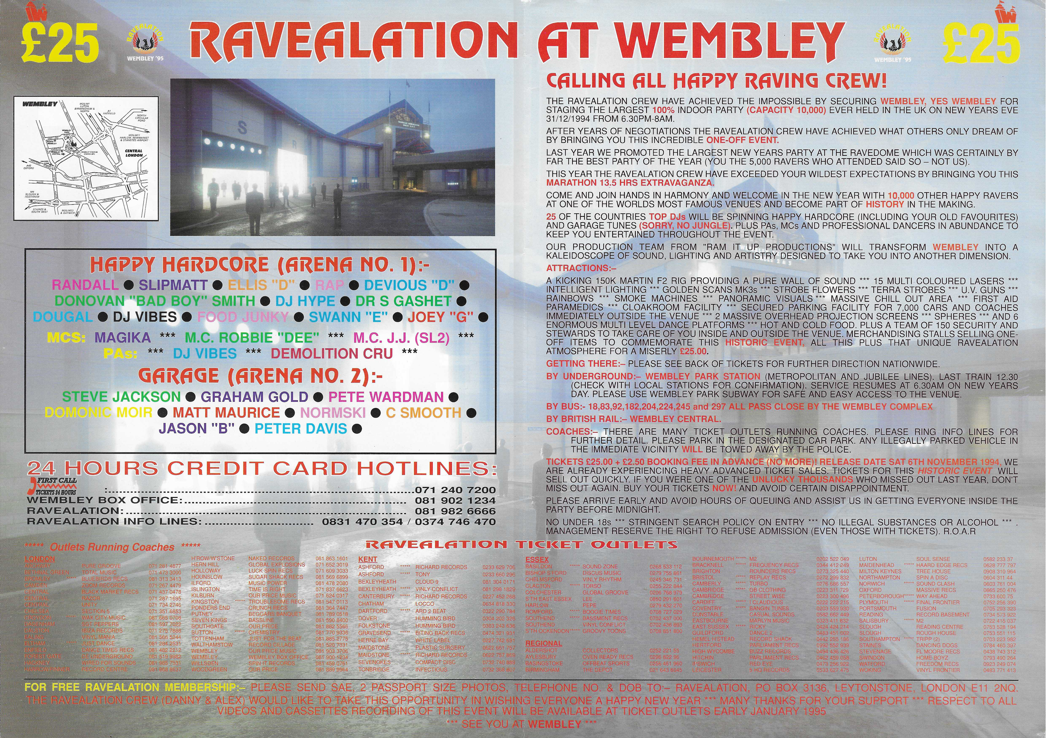 After 1994, Ravealation began hosting more frequent events in Wembley, often collaborating with Strictly Underground and continuing their alliance with Elevation.