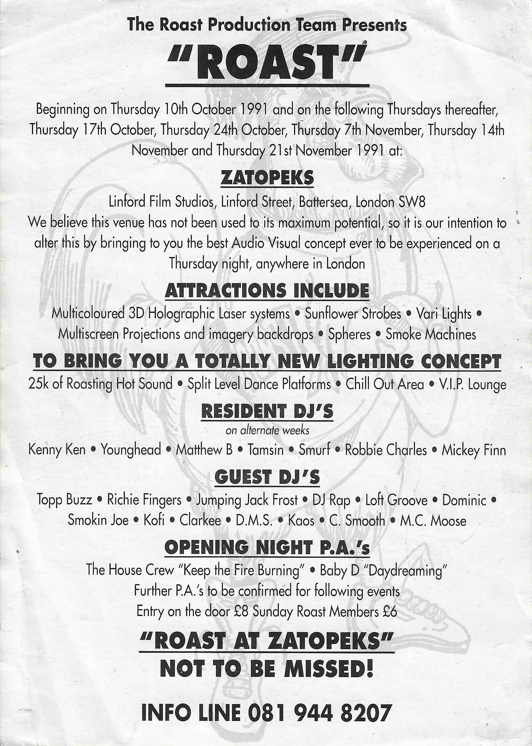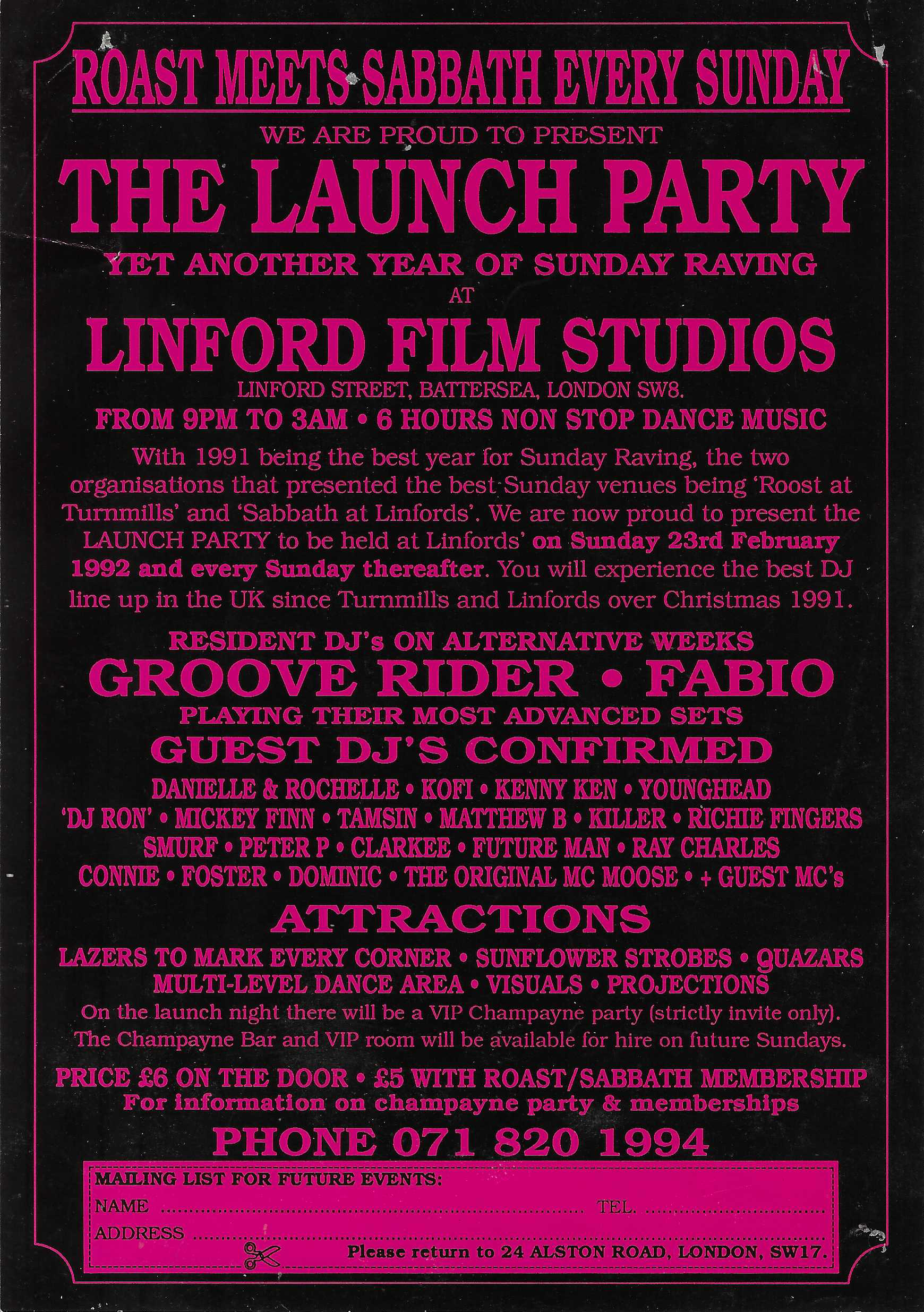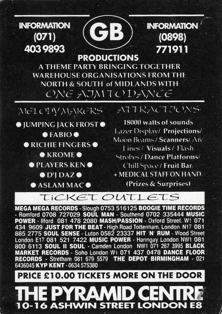 July 90 Farleigh Road Studio. Part I & II. With the ring of success in our ears. We turned to find another venue and after much searching we came across the perfect piace. With just 3 days promotion we attracted a large crowd but we knew we could do better. The very next week we went again. 1500 party goers raved all night without a single incident and only a stones throw from the local station.