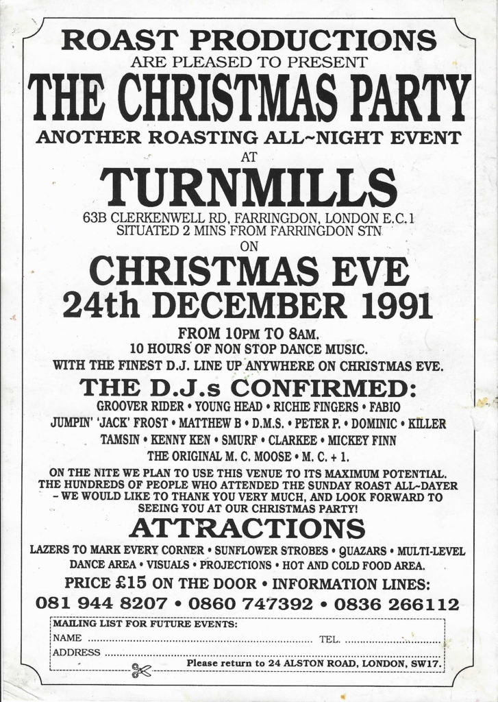 December 89 An East London Christmas Day. With so many police raids happening across the country people lost faith in the scene. This was a party strictly for the die hard raver. Time for a break, time to rethink and plan something special.