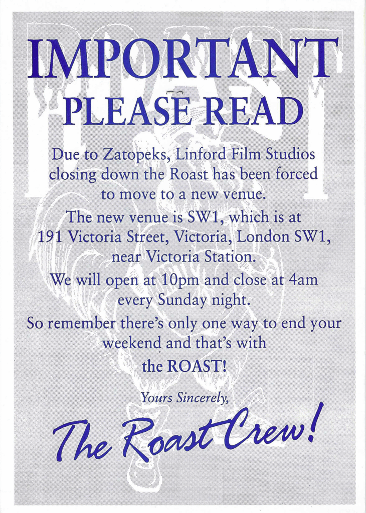 4th April After a long break, 6 months in fact, the heat had been on and it was time to chill out. Freedom returned in the heart of an industrial estate, at a venue later to become known as the Roller Express and had one Fuck off party that went with a bang.