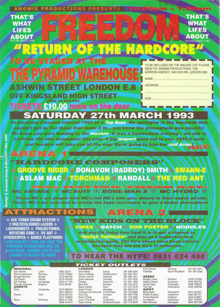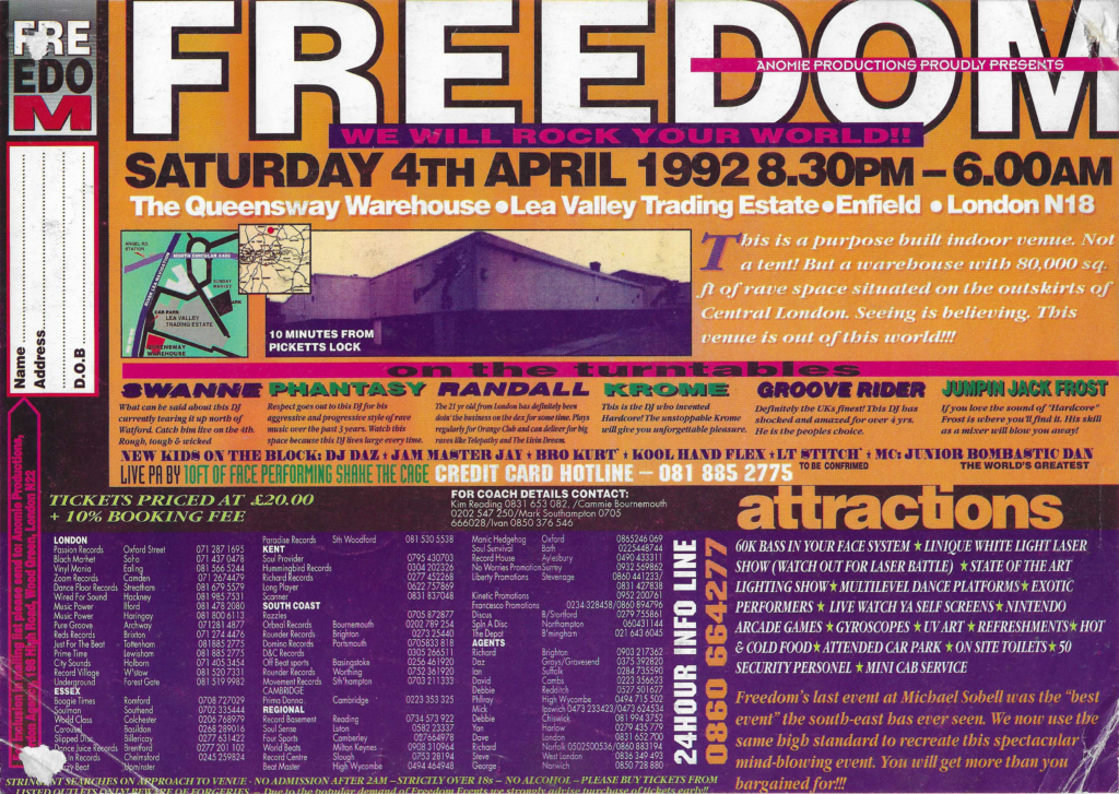 3rd June 89 Crowland Road Part 1 in a time when raves were no more than parties in large dissused warehouses, Freedom began… two friends with a mission, bringing the parties to the masses was our aim and Freedom was born.