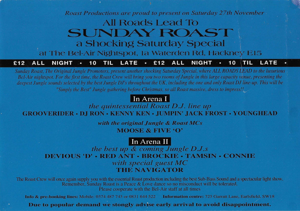 Nov 28th 92 – Tasco Warehouse Part II Why so long? Venues were hard to come by but we finally got a break. Tasco Warehouse Part II created a hype of a kind not seen since the heady days of 89. By 9pm 1300 people were queuing up outside. Then…Calamity! The Blackwall Tunnel was closed at 9.30pm creating 10 mile tailbacks. What had promised to be a great event was only mediocre.