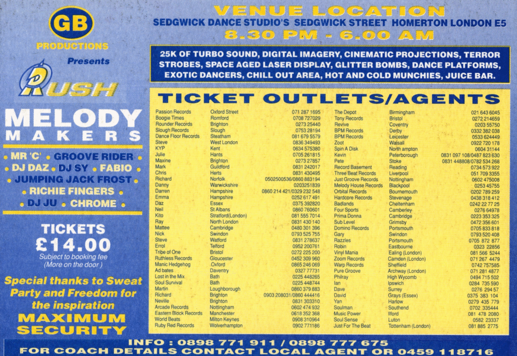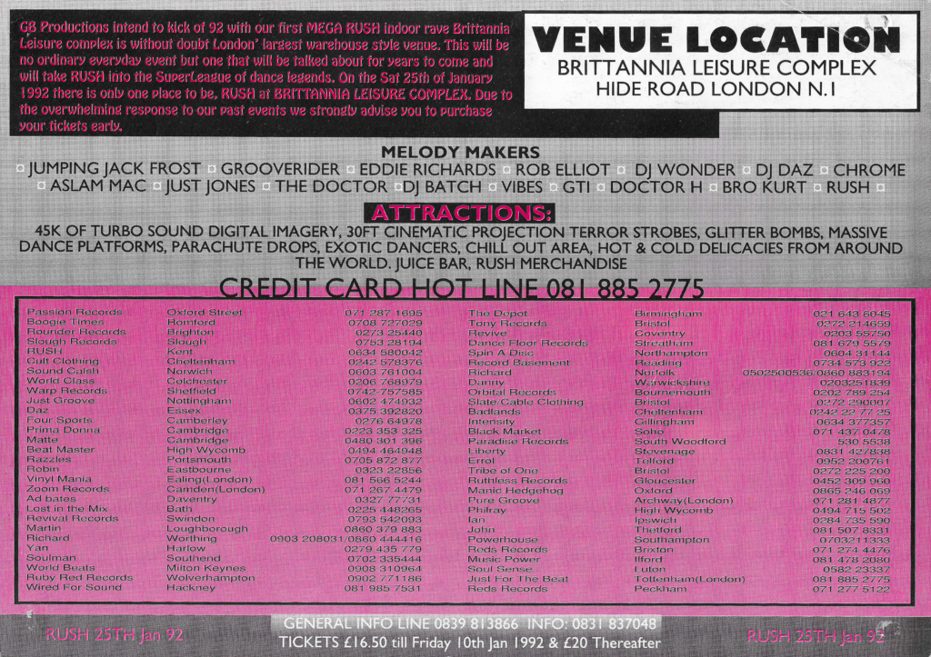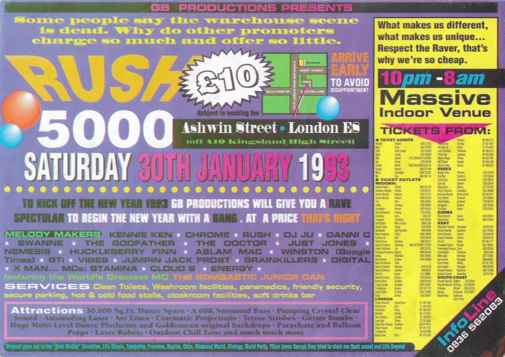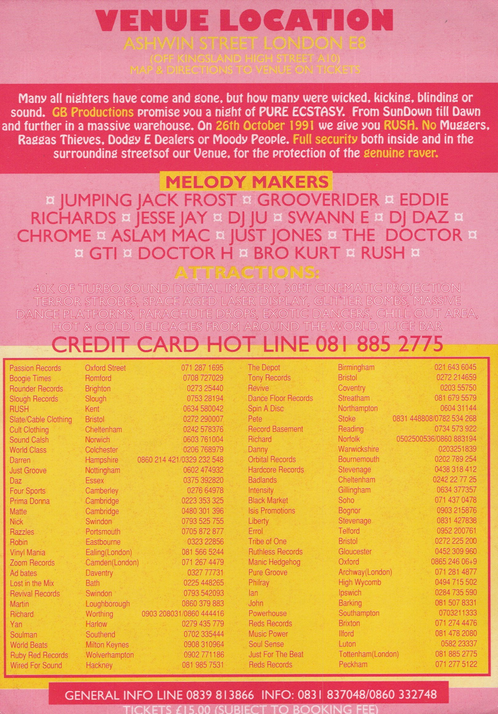 Bank Holiday Sunday, May 24th 92 – Tasco Warehouse Part I Approached by another organisation who knew our pulling power, Freedom decided to join up with Rush to give our public what they wanted… a bank holiday Sunday bash the way it should be done.