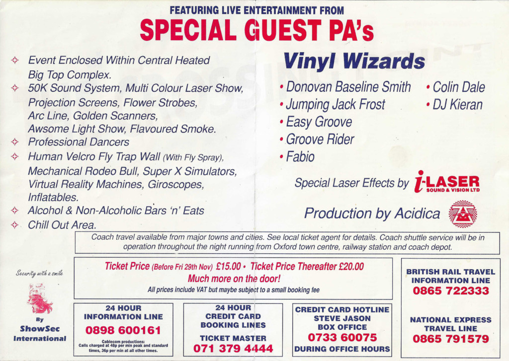 A one-off promotion and the first ever event to be held at Enstone Airfield (later to be used by Raindance). Produced by Acidica Productions who would go on to promote Tomorrow Is Born at the Royal Bath & West Showground.
