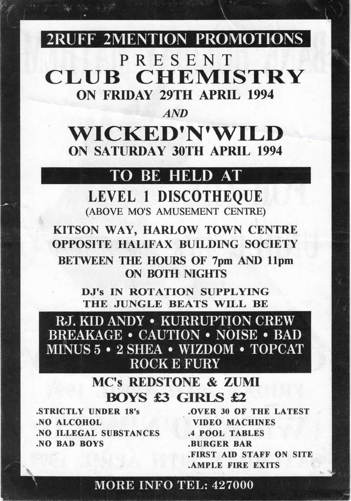 | 29th & 30th April | Level 1 Discotheque, Harlow | Club Chemistry / Wicked ‘N’ Wild |