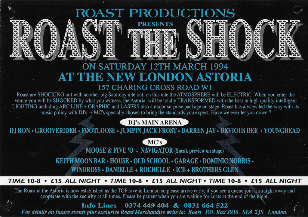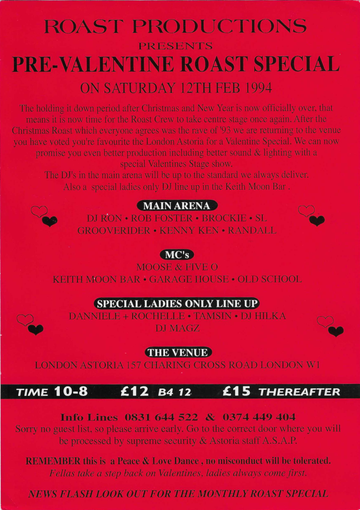 Nov 28th 92 – Tasco Warehouse Part II Why so long? Venues were hard to come by but we finally got a break. Tasco Warehouse Part II created a hype of a kind not seen since the heady days of 89. By 9pm 1300 people were queuing up outside. Then…Calamity! The Blackwall Tunnel was closed at 9.30pm creating 10 mile tailbacks. What had promised to be a great event was only mediocre.