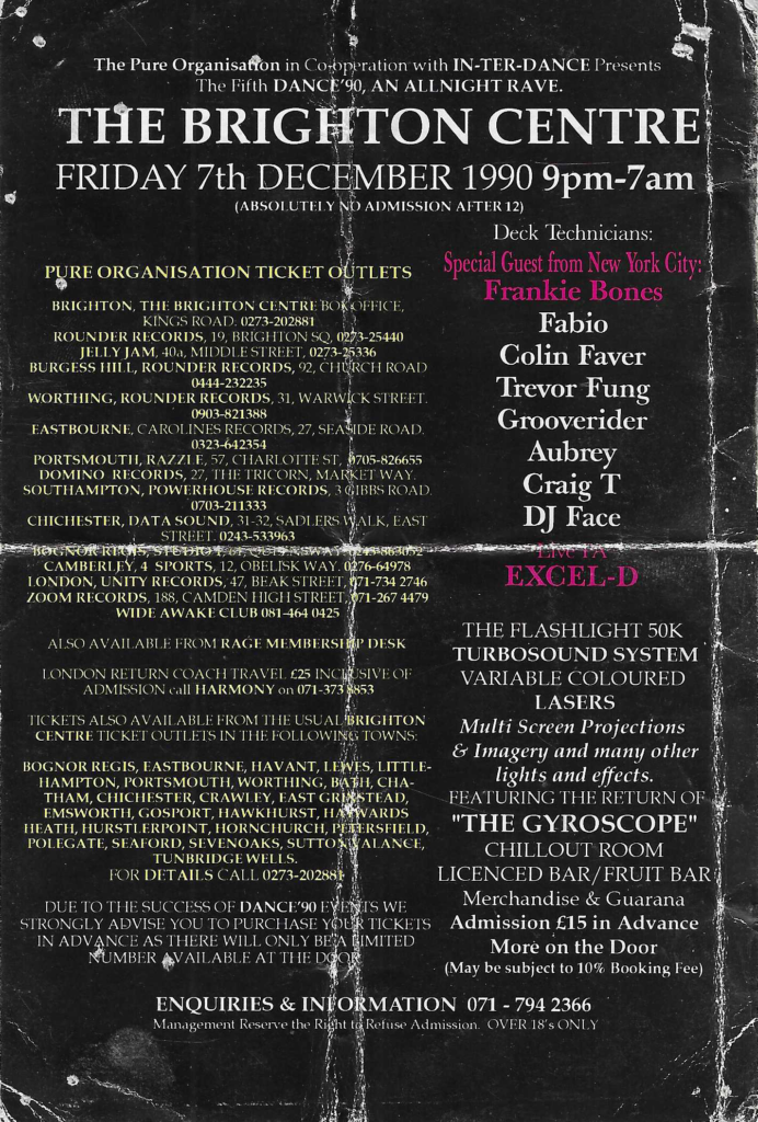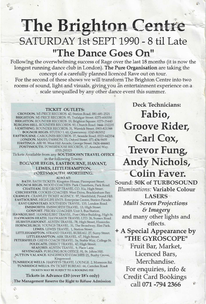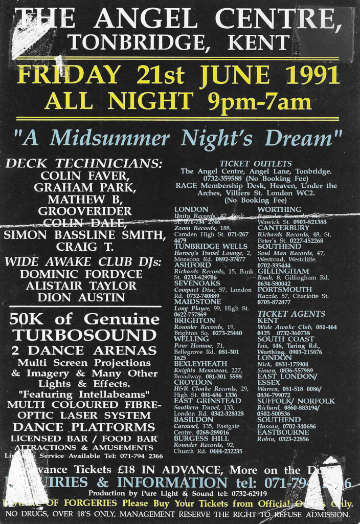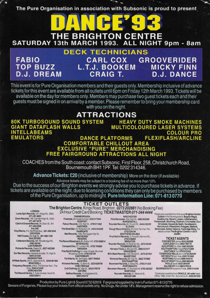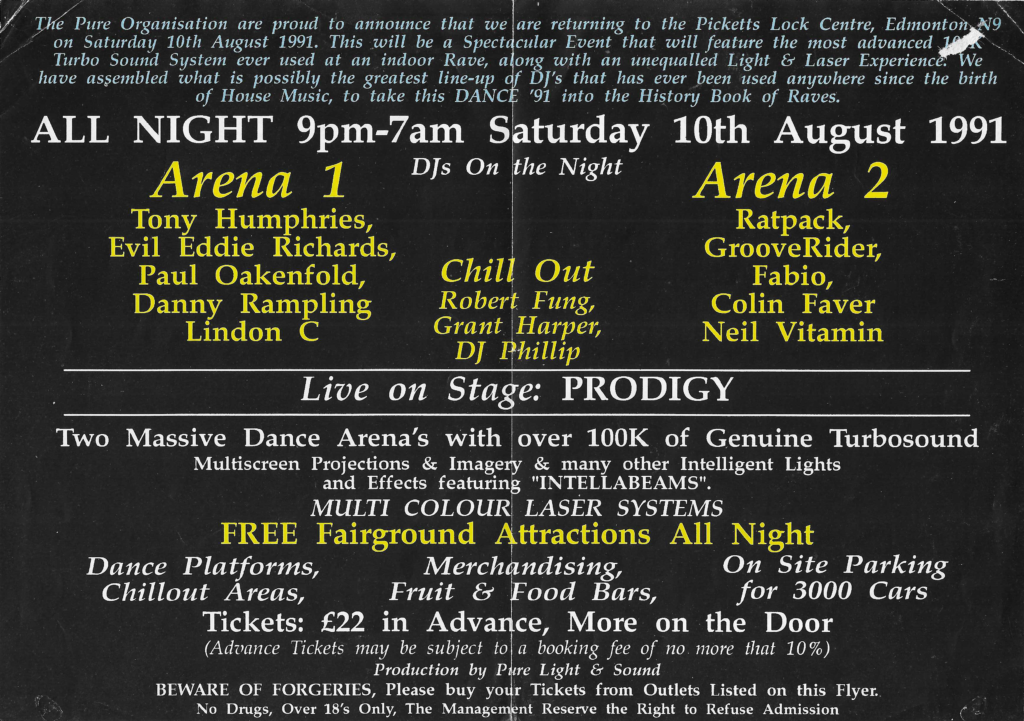 The Pure Organisation 1st September 1990 – Dance ’90 7th December 1990 – Dance ’90 1st February 1991 – Dance ’91 8th June 1991 – Dance ’91 21st June 1991 – A Midsummer Night’s Dream 2nd August 1991 – Dance ’91 10th August 1991 27th September 1991 – Dance ’91 23rd November 1991 – Dance ’91 13th March 1993 – Dance ’93 2nd May 1993 – Back To The Summer Of Love 5th June 1993 – Playground 1993 – Playground Dance ’93 Tags – Dance 91 – Rage – The Pure Organisation