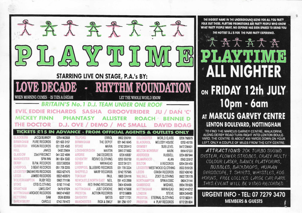 Phuture Promotions 12th July 1991 – Playtime Tags – Marcus Garvey Centre – Phuture Promotions – Playtime