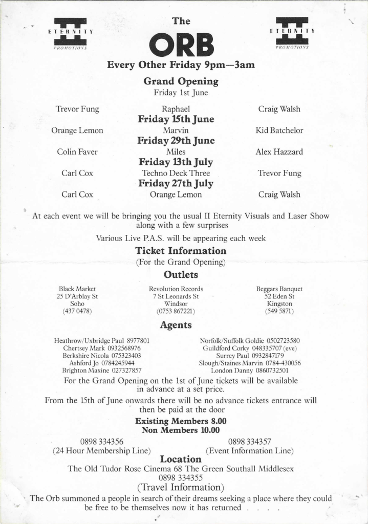 Tags – Eternity 2 – Eternity II – Eternity II Promotions – Southall – The Orb – Tudor Rose