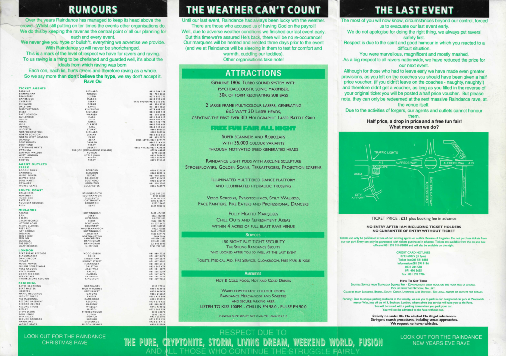 Raindance 22nd December 1990 – Xmas Special 2nd November 1991 – Autumn Series: 1 30th November 1991 – Autumn Series: 2 31st December 1991 1992? 18th April 1992 – Resurrection 5th November 1993 Tags – Big Bad Head – Head – Ism Prism – Raindance
