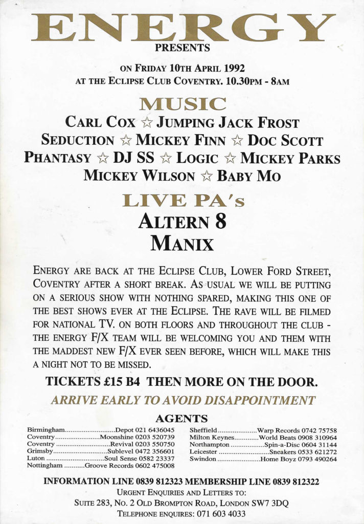 One off promotion under the Lion Promotions banner but possibly co-promoted by Karma Productions who hosted an ‘Energetic’ weekend in Skegness on the 27th October 1990.