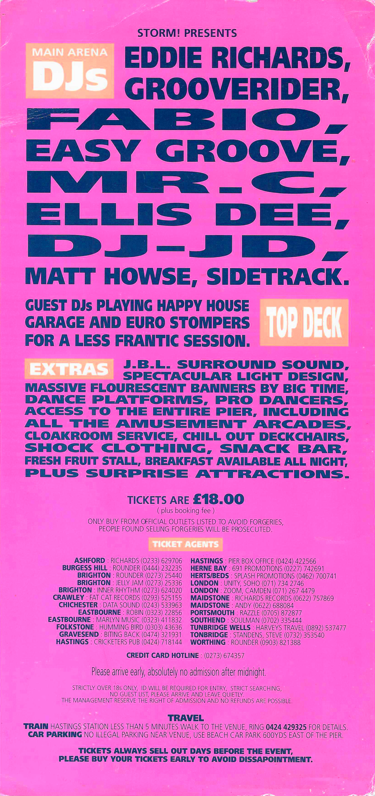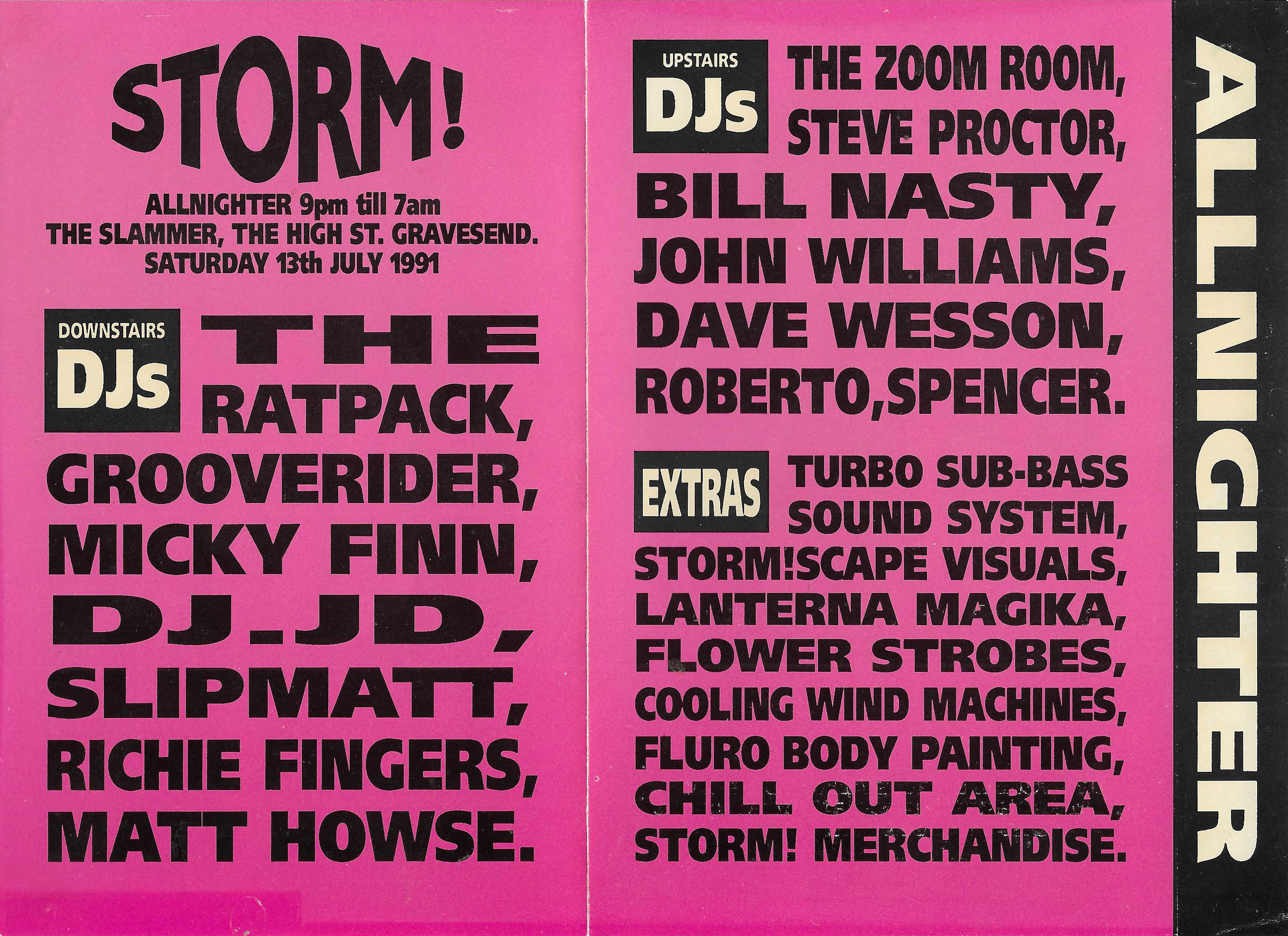 In 1990 sterns saw change!!! After the initial media outcry brought about by the M25 raves and illegal warehouse parties. driven by the explosion of house and dance music, and combined with the eagerness of the youth to party all night, a new breed of promoter emerged. Mensa was one of these and from small one-off events in Bognor Regis, formed In-Ter-Dance. With the help of a Government Enterprise Allowance and the finding of Sterns, the ideal venue to take the illegality away from the initial house music dance parties, a south coast scene started to emerge. After a successful one-off all night party in the June of 1990, January 1991 saw the beginning of a once monthly all-night party at sterns, and with the initial co-operation of police and council Sterns achieved national acclaim and became one of the safest places to party in the country. This also alleviated the local problem of illegal parties and in the August of ‘91 the council and police asked the then licencee (Mr Derek Talbot) if he would be prepared to hold weekly all night events. Of course, we jumped at the chance and the rest of ‘91 was certainly a tear to be remembered. So far so good!