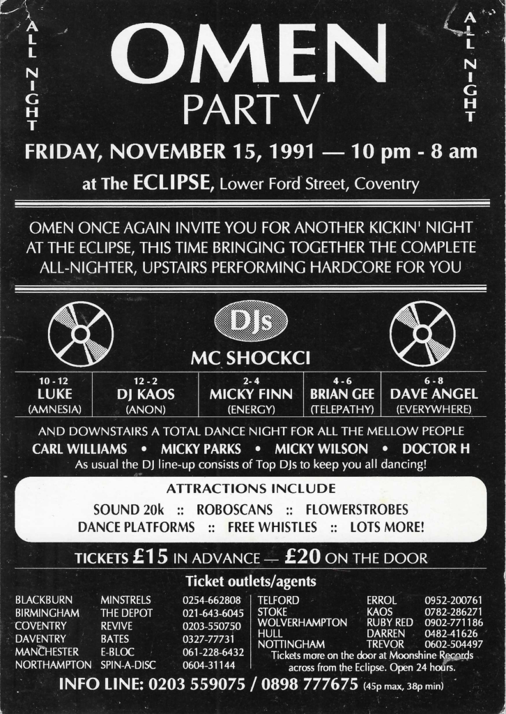 Omen Leave a Reply 15th November 1991 – Omen Part V Tags – Eclipse – Omen – The Eclipse Coventry rave