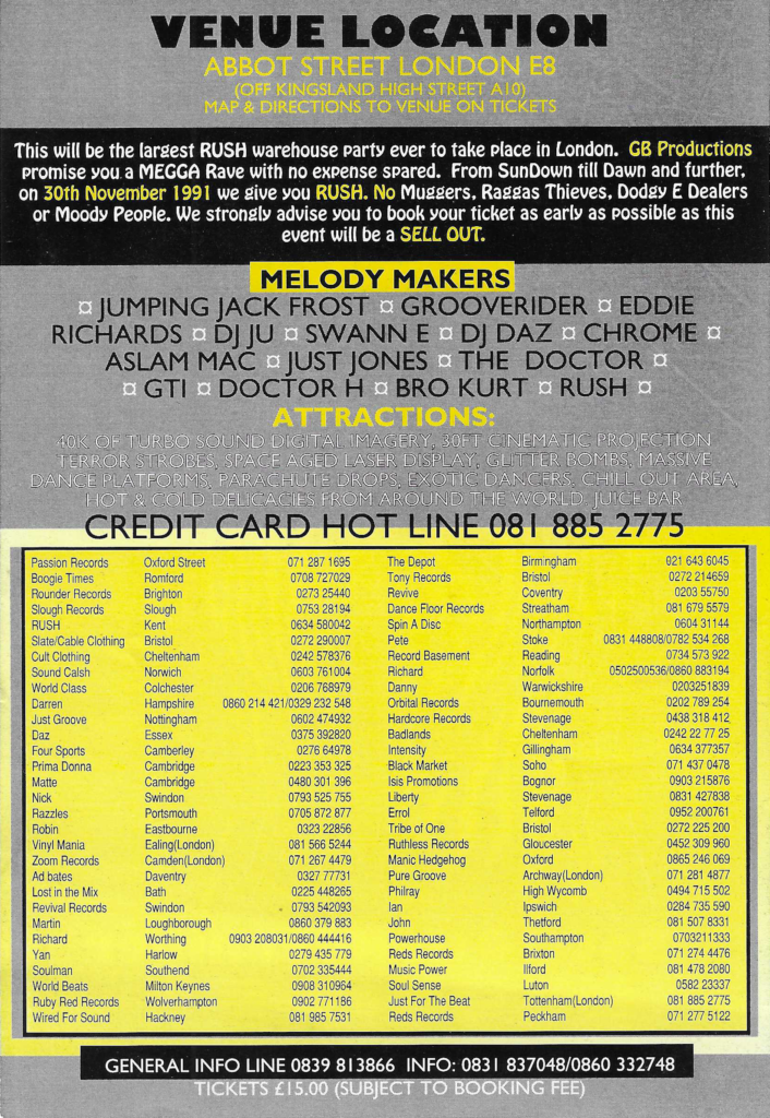 Promoted just the one event as the Tasco Warehouse in Plumstead from what I can find. Possible connection to Weekend Rush and/or Defection FM.